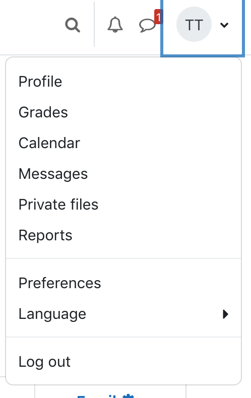 Notifications: pour être alerté si vous avez paramétré des activités (par exemple : devoir, forum, feedback, etc).Discussion: pour converser avec une personne en particulier ou un groupe de personnes.Complément : Pour en savoir plus sur votre compte utilisateur⚓