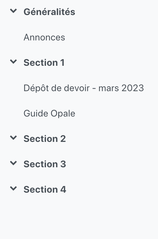 Options des sections du cours (partie centrale, après la zone introductive)⚓